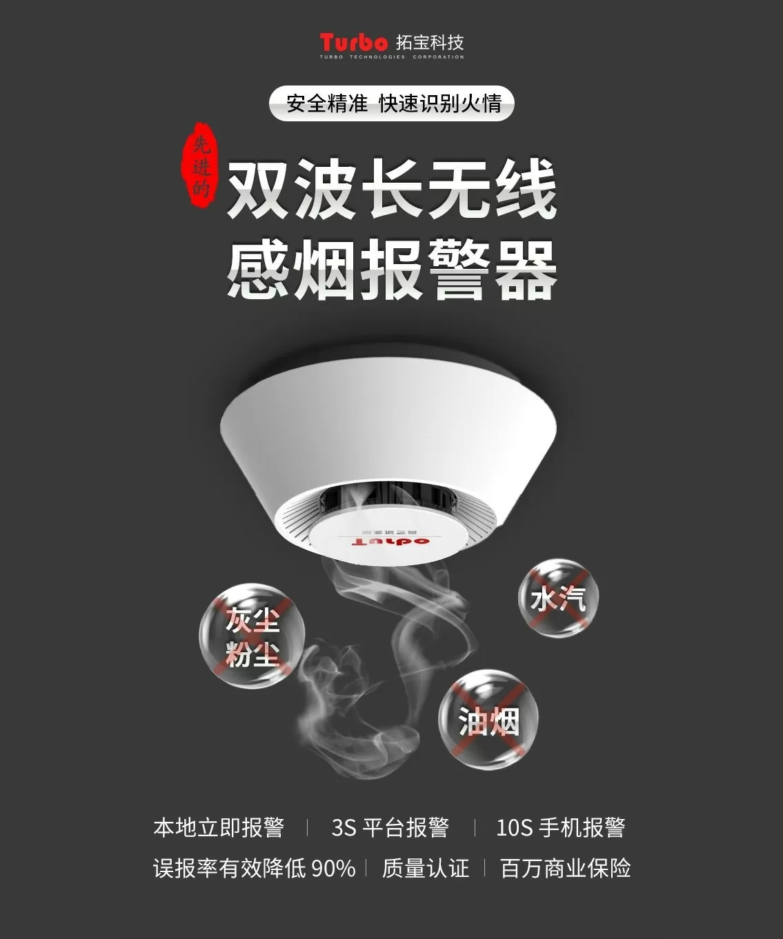 · 低误报:采用双波长检测算法,可有效区分粉尘、水雾、烟雾,真正降低误报率;